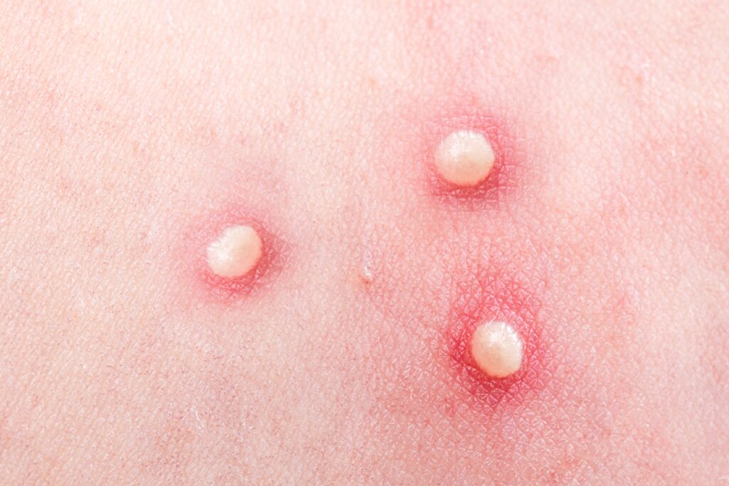 - สิวหัวขาว (สิวหัวปิด) สิวหัวขาวเป็นตุ่มเล็กๆ สีเนื้อหรือสีขาวบนผิวหนัง เรียกว่า comedones แบบปิด เพราะรูขุมขนปิดหรือยังถูกปกคลุมด้วยชั้นผิวหนังบางๆ สิวหัวขาวเกิดขึ้นเมื่อรูขุมขนอุดตันด้วยน้ำมัน เซลล์ผิวที่ตายแล้ว และแบคทีเรีย เนื่องจากรูขุมขนปิด ทำให้สิ่งที่อุดตันอยู่บนผิวยังไม่ได้สัมผัสกับอากาศ
