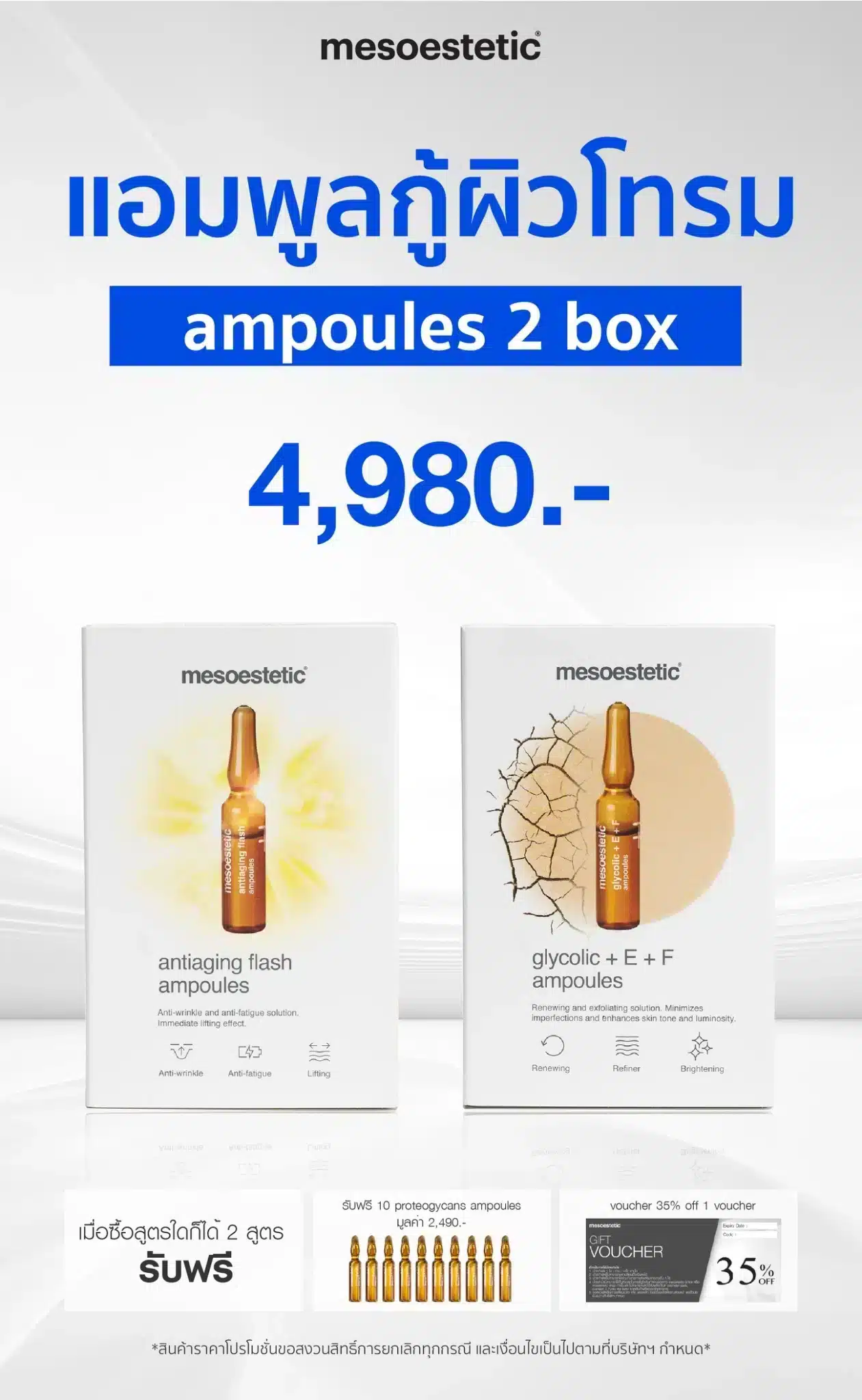 แอมพูลสูตรเข้มข้นบำรุงผิวอย่างล้ำลึก ช่วยเติมสารอาหารให้แก่ผิว ฟื้นบำรุงผิวให้ชุ่มชื้น เหมาะกับการใช้หลังการสครับผิว หรือผลัดเซลล์ผิว (เช่น ใช้คู่กับ mesoRESET ไกลโคลิก แอมพูล) เป็นเซรั่มบำรุงหลังการทำเลเซอร์ ผลัดเซลล์ สามารถใช้ทารอบดวงตา ริมฝีปาก และบริเวณคอได้